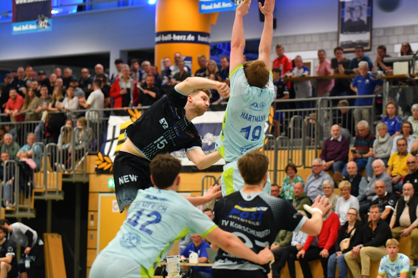 Vor 510 Zuschauern feierte der TV Korschenbroich einen ungefährdeten 42:24-Heimsieg gegen den VfL Gummersbach II. Von Beginn an zeigte das Handballherz-Team eine konzentrierte Leistung: Dustin Franz eröffnete die Partie bereits in der ersten Spielminute mit dem 1:0. Zwar blieb die Anfangsphase bis zum 3:3 ausgeglichen, doch danach setzte sich der TVK kontinuierlich ab. Über ein 8:3 (11. Minute) wurde bis zur Pause eine solide 16:10-Führung erarbeitet.